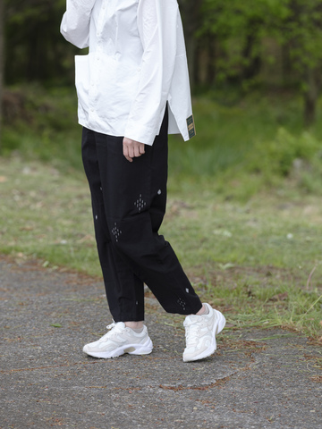 本来のもんぺの型がベースとなっているファーマーズもんぺ。農作業着としての機能性や歴史を体感してもらいたい、さまざまな体格の方に穿いて楽しんでもらえたい、という想いで制作されています。