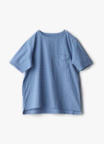生地の軽さと風通しの良さに加えて、何と言っても特徴はこのTシャツ風のデザイン。Tシャツの気軽さと、シャツの上品さを兼ね備えた1着です。