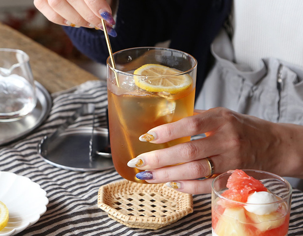 飲み物だけでなく、食べ物の器としても。パフェにしたり、ゼリーを入れて、グラスデザートにできます。