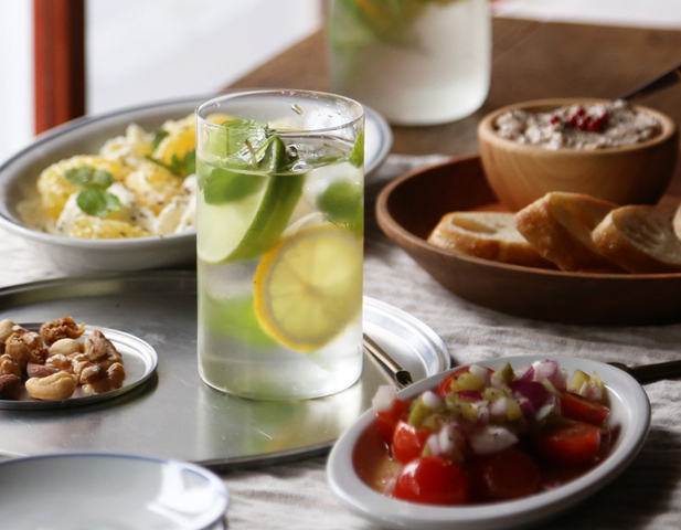 氷を入れた炭酸水やハーブウォーター、アイスコーヒーなども良く似合います。