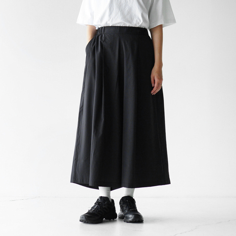 動くたびにふわりと揺れるフレアシルエットが美しく、まるでスカートのようなエレガントさを演出してくれるワイドパンツ。