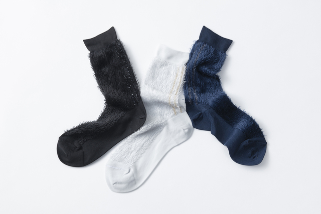 グリッターラインがエッジを効かせるファーソックス。ショートブーツからもチラリと顔を出すクルー丈なので、秋冬のコーディネートに季節感をプラスします。ベースは薄い生地のため、靴に合わせても窮屈になりません。 人気のファーソックスにさり気ないアクセントがあえて見せたくなるデザインです。