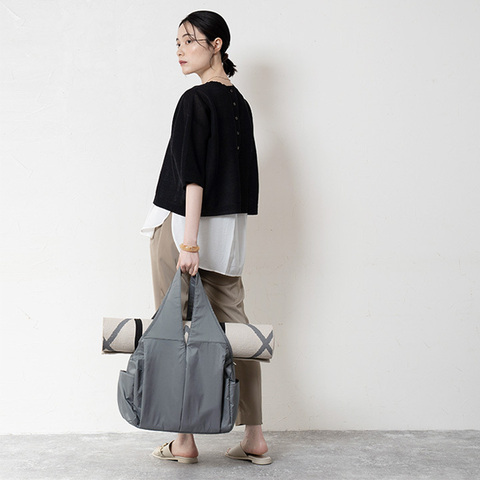 ボストンバッグを使うほどでない小旅行や、ヨガ・ジム通い、小さなお子さんとのお出かけなど、荷物が多い日にぴったりな、わずか310gの大きなトートバッグです。