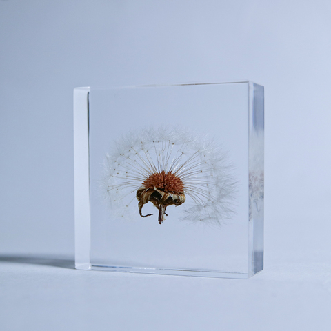 このアクリルの熱により中の植物が褪色する恐れがありますが、Sola tileでは使用するアクリル樹脂の量をグッと少なくすることで熱の上昇を抑え、繊細な色を持つ押し花状の植物をそのまま封入することに成功しました。