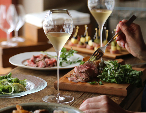 シャンパングラスにも似た形状にブルゴーニュグラスの要素を足して割ったようなフォルム。スパークリングワインから白ワイン、ロゼ、赤ワインなど色々なワインをお楽しみいただけます。