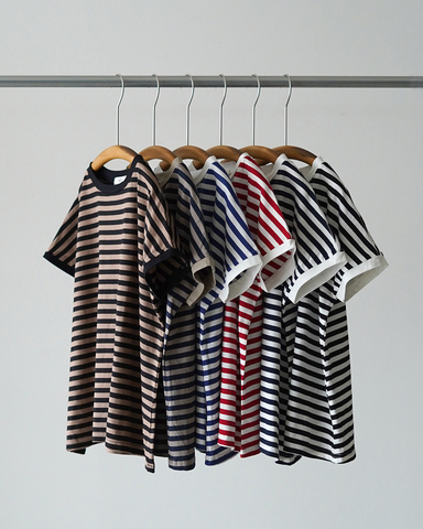 リラックス感と清潔感をあわせ持つ、程よいボーダー幅が大人っぽい一着。
