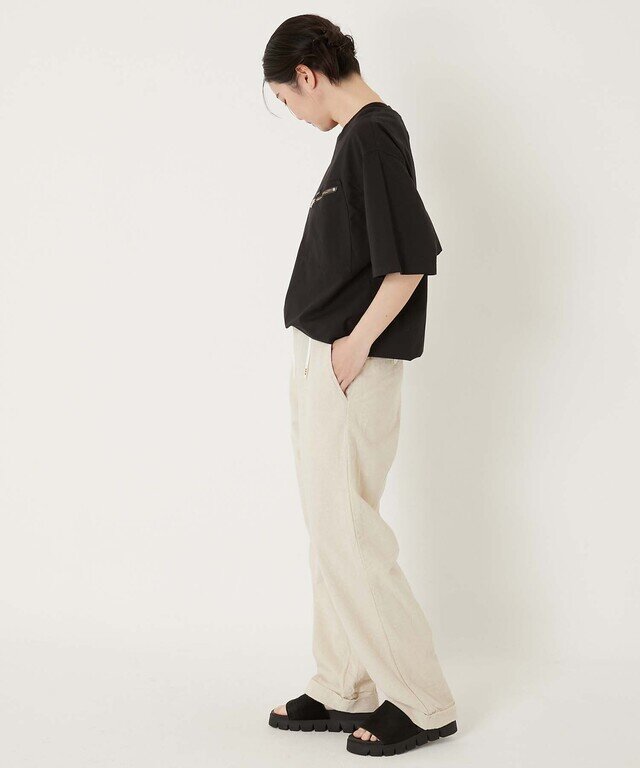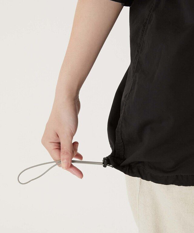 裾周りにドローコードを用いブラウジングも可能なデザインにしています。