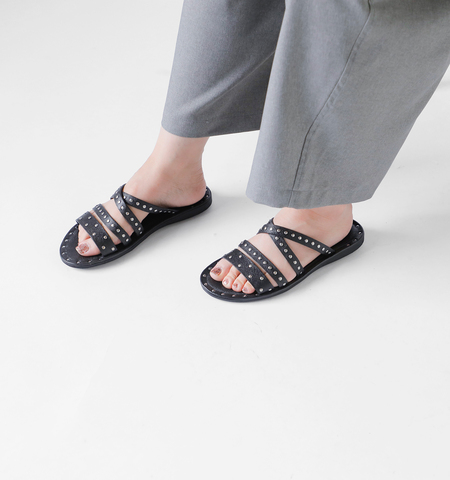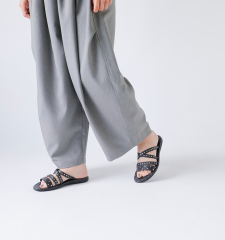 BRADOR(ブラドール)より、レザー クロス スタッズ フラット サンダル “MIA”のご紹介です。