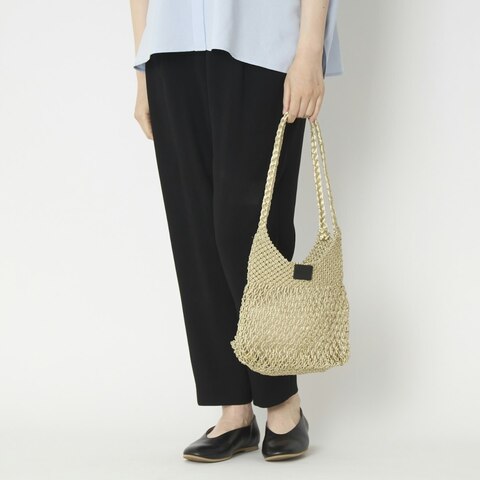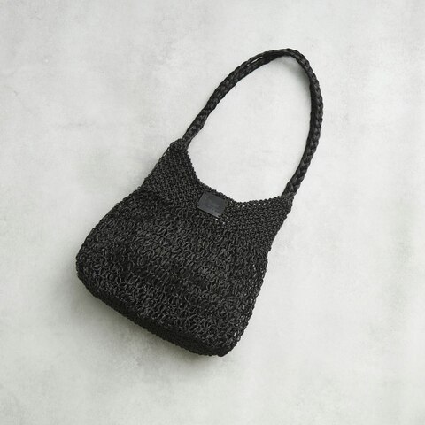 マクラメ編みとは、紐や糸を手で編み、結び目を作って模様を生み出す技法のこと。ポコポコとした立体的な編み目が、かごバッグのような雰囲気を醸し出します。