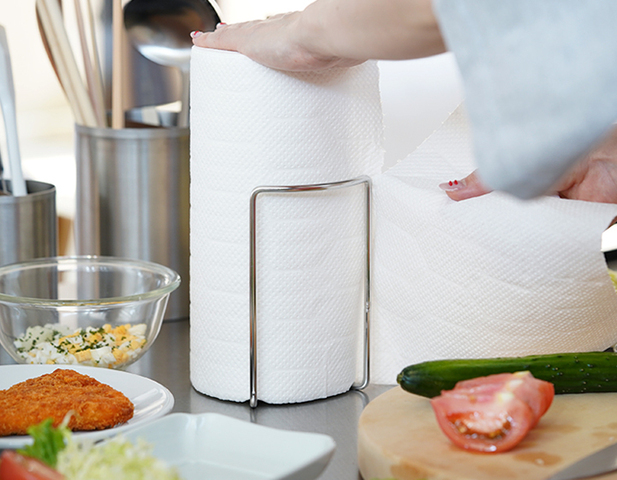 作業スペースを邪魔しない、コンパクトなサイズのキッチンペーパースタンド。キッチンに馴染みやすいシンプルなデザインです。