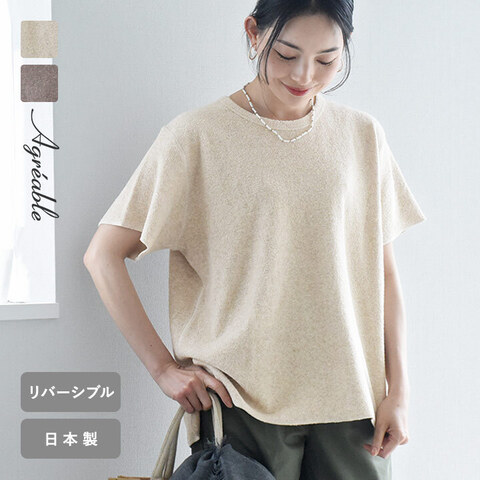 ふわもこの触り心地に癒される、パイルとリブのリバーシブルなトップスです。