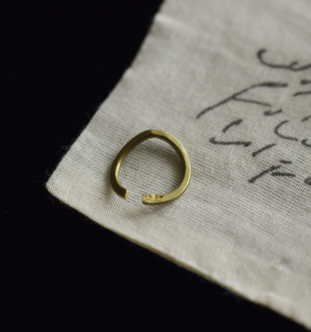 真鍮で形つくられたイヤーカフは使うほどに馴染み、経年変化の美しい表情を見せ、たおやかに弧を描く真鍮に1点1点刻みこむように打ち込まれた模様は、手仕事の温度を感じさせてくれます。
