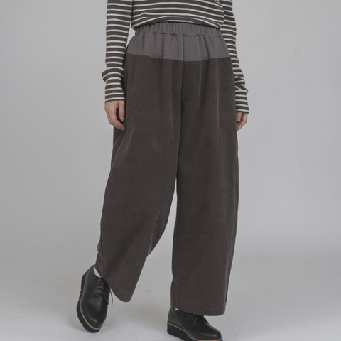 ウエスト部分には裏毛起毛素材を使用し、異素材の切り替えがさりげないアクセントに。