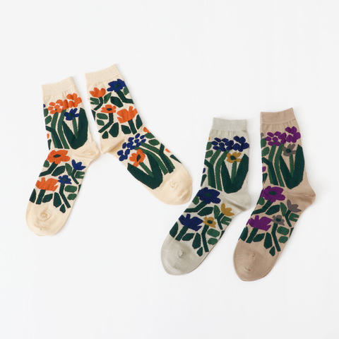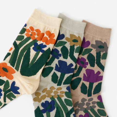 風に揺れる花々をモチーフにしたソックスです。