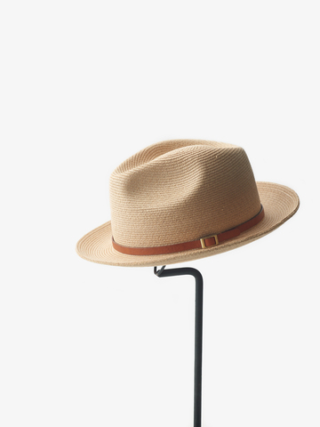 ラフィア素材の風合いが心地よい、スタンダードな中折れハットです。ヤシの葉から作られたラフィアをテープ状に編んだ「ラフィアブレード」を用い、軽くしなやかなかぶり心地に仕立てられています。かぶらないときはくるっと丸めてバッグにしまえる柔らかさ。