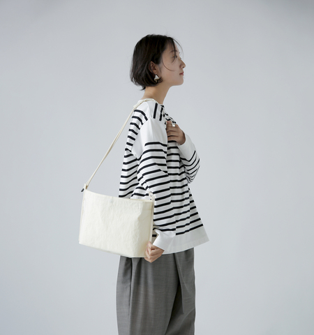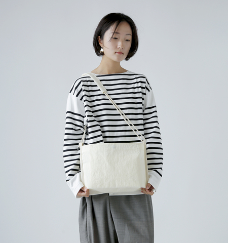 ナイロンのイメージを覆すマットな質感、ハリ・コシ・シワ感があるドライな風合い。 和紙のようなバリっとしたコシがあり、洗いざらしのようなごわつきさえ感じられます。 ナイロンの特徴でもある強度や耐久性により、引裂き強度に優れた実用性も併せ持ち、ルックスはまるで帆布よう。しかも驚くほど軽量ですので負担なくご使用いただけます。