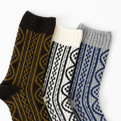 - 靴下の特性上、色や柄の切り替え部分や、履き口のゴム部分は糸の端末が裏側に出ています。