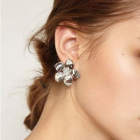 エッジィでモード感のあるお花モチーフは他にはないオリジナルデザインで、大振りの存在感が装いのアクセントに。