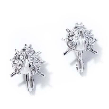幸運を運ぶ虫=レディバードをプレシオサやパールをあしらって、リアルに表現したユニークでエレガントなイヤリング。