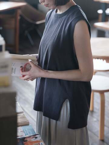 広すぎないアームホール、ノースリーブでも着やすい開き具合です。