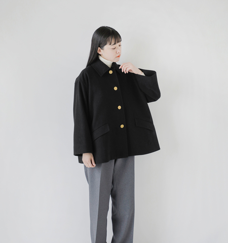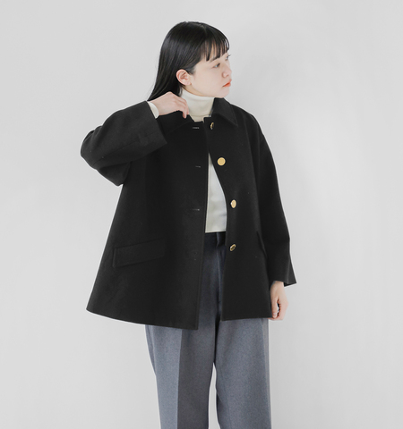 あたたかみのあるライトメルトン生地を使用した、軽やかなショート丈のコート。