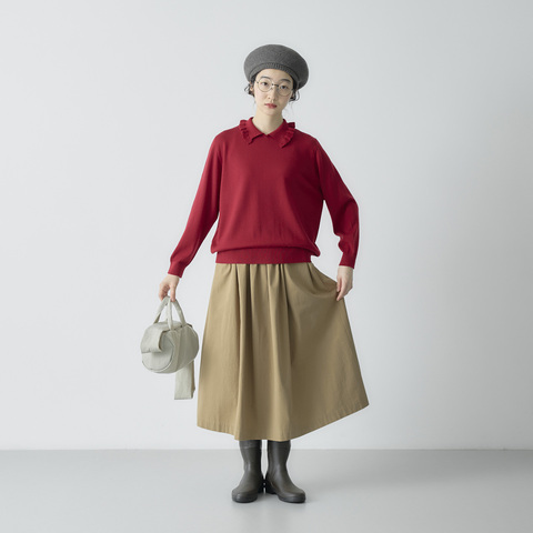 動きのある程よいギャザー分量と落ち感のあるシルエットが女性らしい印象に。