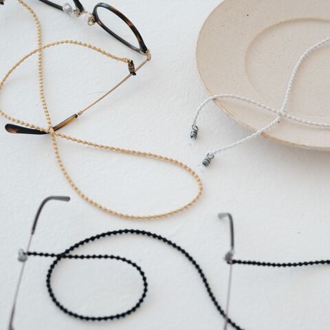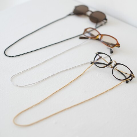 人気のグラスコードにマイクロスフィアタイプが登場!繊細なラメ糸で作られたグラスコードは、メガネまわりをさりげなく華やかに彩ります。