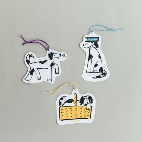 デザインは3種類。それぞれイラストのワンポイントカラーに合った紐がついています。オーナメントにするのはもちろん、ギフトなどの袋の口をキュッと縛るのにも使えそうです。(紐の長さは全長25cm)