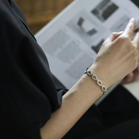 また、「丸がたくさん並んだ、どんなコーディネートにも合う、シンプルで軽く着けやすいバングルが作りたい!」と作り出したモチーフは、どんな装いにも合うのも魅力です。