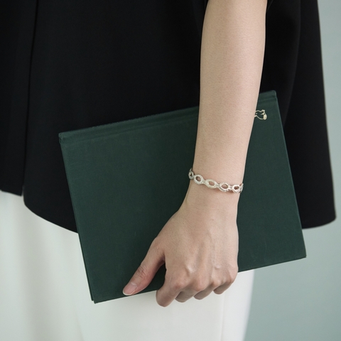 繊細なレースモチーフとシルバーの輝きが手元を彩る