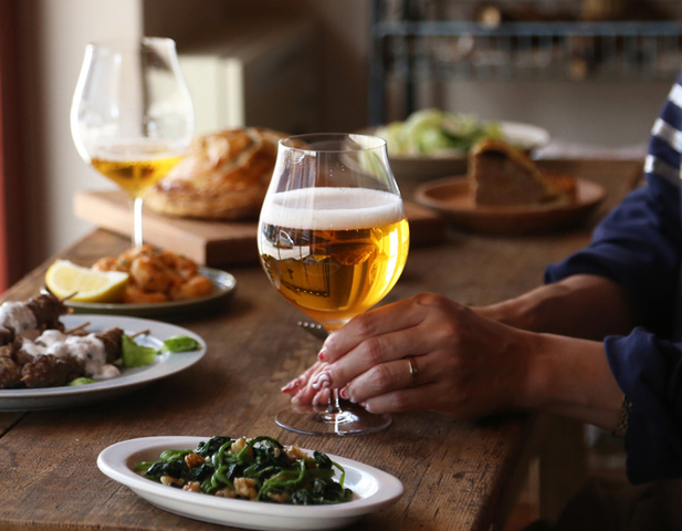 グラス自体の重みをほとんど感じず、細い脚の上にビールの重さのみあるような…その不安定さがとても不思議な感覚で、ビールを楽しんでいることを実感します。