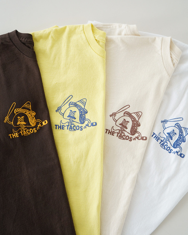 ユニークなタコスキャラクターが目を引く半袖Tシャツ。メキシコ文化が色濃く残るサンディエゴのローカルグルメをモチーフに、発泡プリントで立体的に仕上げた遊び心あふれるデザインです。