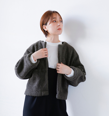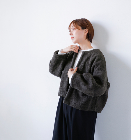 ふんわりとしたシープボアパイル素材を使用し、あたたかく、やさしい肌触りが魅力の一枚。