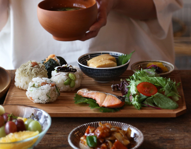 おにぎりや和食にも重宝します。溝の間隔が狭いので、豆皿など置いてもぐらつくことがなくぴたっと止まり安定。