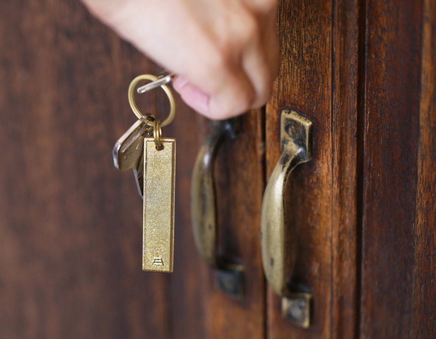 FUTAGAMI|キーホルダー 鋳肌プレート 長 無地/ロゴ