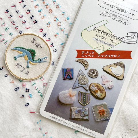 「猫のポーズ刺繍キット」と「おなまえ刺繍キット」を『BOOKワッペン』に刺繍