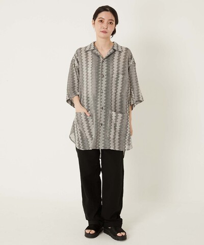 HOLLYWOOD RANCH MARKET|BINDU × HRM TIJUANA MAP オープンカラーシャツ 半袖 刺繡 オーバーサイズ ユニセックス コラボ 別注 柄シャツ
