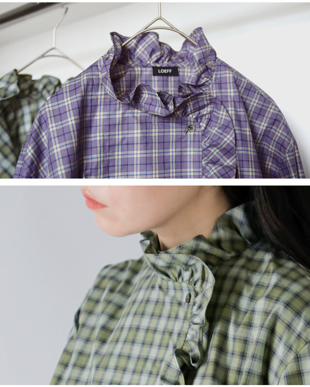 LOEFF|オーガニックコットン チェック フリル シャツ 8811-299-0073-fn