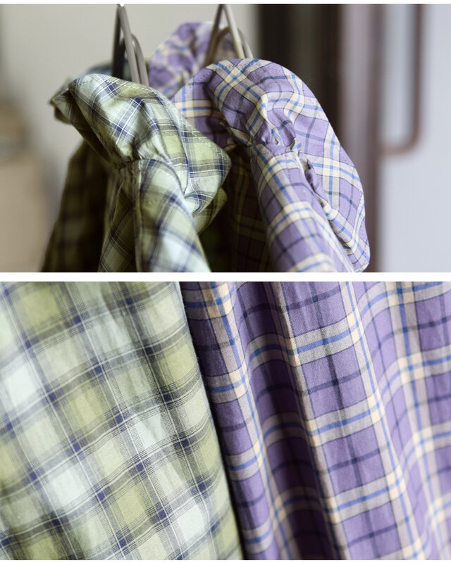 トルコの生地メーカーSOKTUS社の、オーガニックコットン素材を使用。やわらかな風合いと通気性の良さで、季節を問わず心地よく着られる一枚です。くすみ感のあるパープルにイエローのアクセントが効いた優しく個性的なカラー「パープル」。落ち着いたオリーブグリーンにネイビーのラインでナチュラルで大人っぽい印象の「オリーブ」の2色展開。