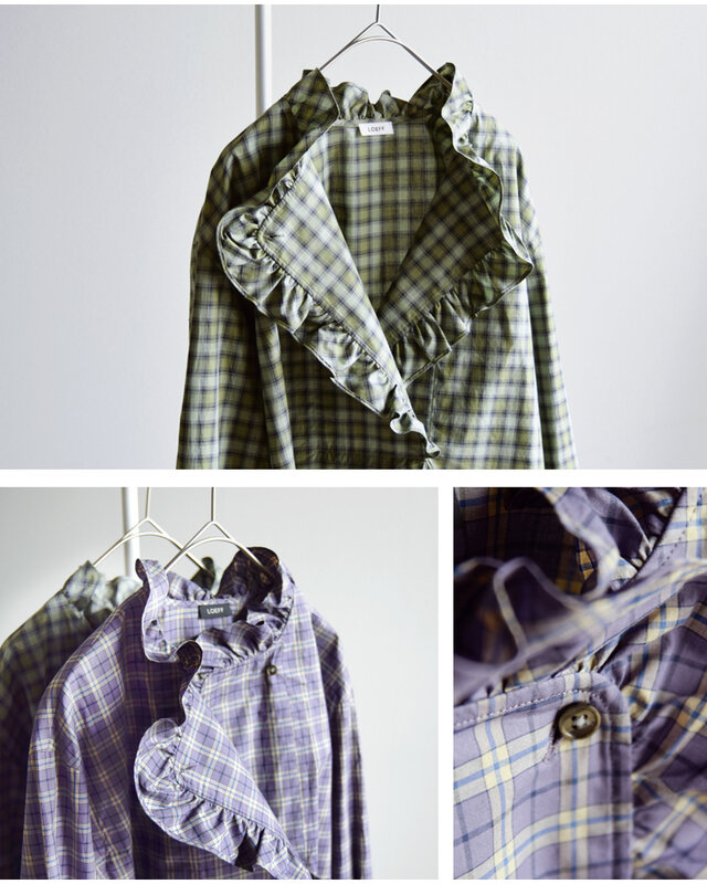 LOEFF(ロエフ)より、オーガニックコットン チェック フリル シャツのご紹介です。