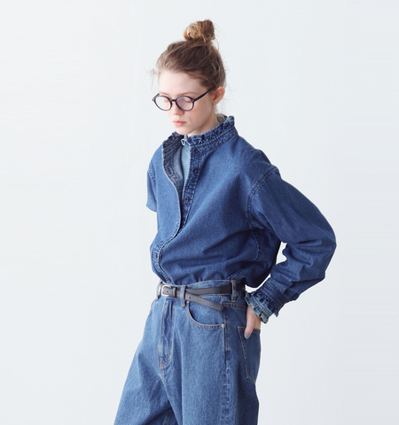 ESTROISLOSE|綿麻ライトオンスデニム フリルシャツ