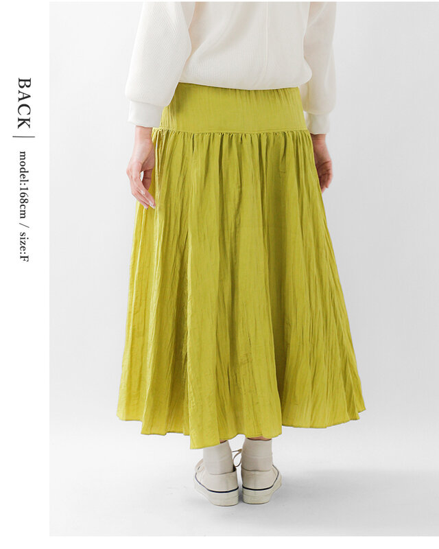 ・ふんわりと広がる裾が、ワッシャー素材の柔らかな表情を引き立てます。