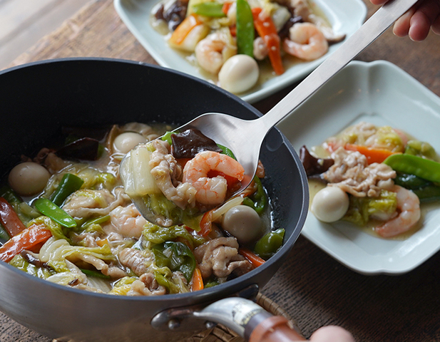チャーハンを作る際など、ヘラのように混ぜる、寄せる、ほぐす、返しすなど、炒めるのに便利な調理スコップ。スコップのように立ち上がりがあるので麻婆豆腐や八宝菜など汁気のあるものもすくえます。