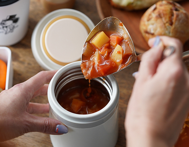 鍋底や鍋肌にあうハマグリ型で具材を寄せ集めやすいお玉。皿部分の手前側が鍋の側面や底面にフィットするので、寄せてかき集めやすいです。 容量は35mlで、卓上で煮豆などをすくったり、小鉢の盛り付けやスープジャーへ注ぐときにも便利。