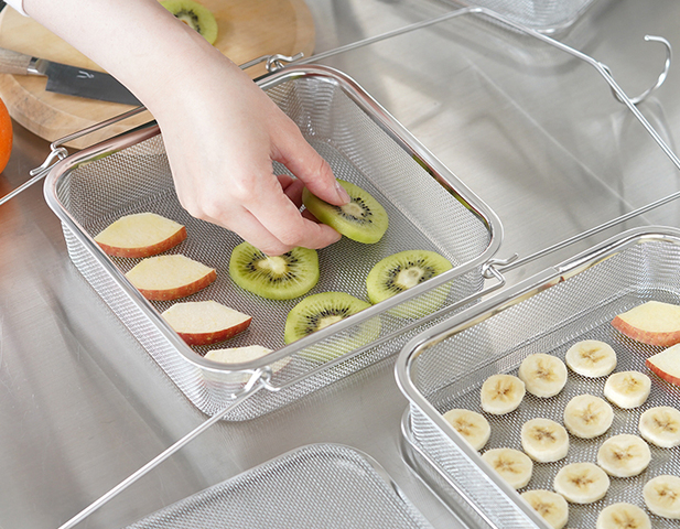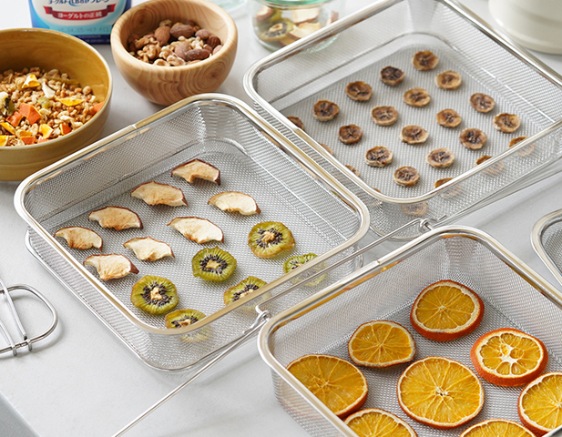 野菜や果物などの干し物づくりに便利なステンレス製の干しかご。