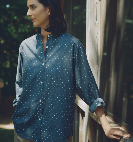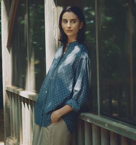 ESTROISLOSE|綿麻ライトオンスデニム フリルシャツ
