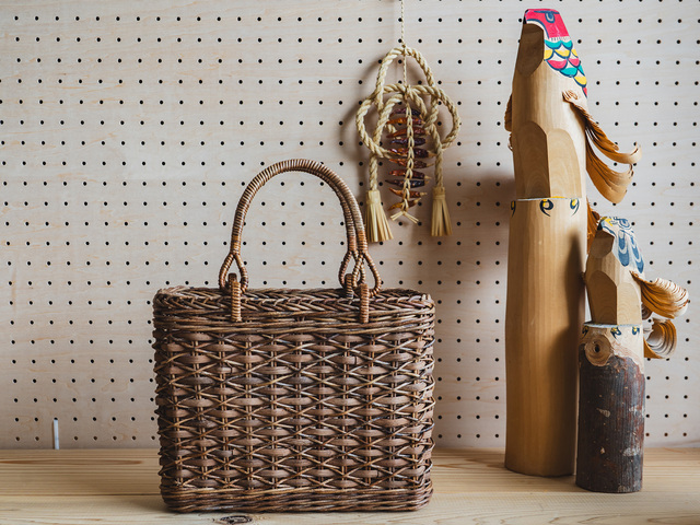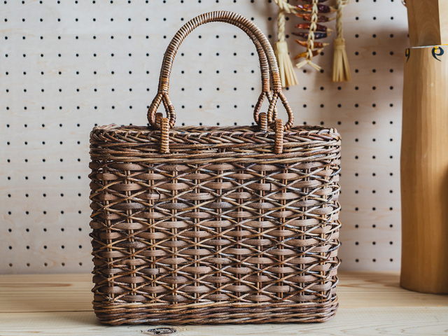 青森県の伝統工芸品・あけび蔓細工(あけびつるざいく)。