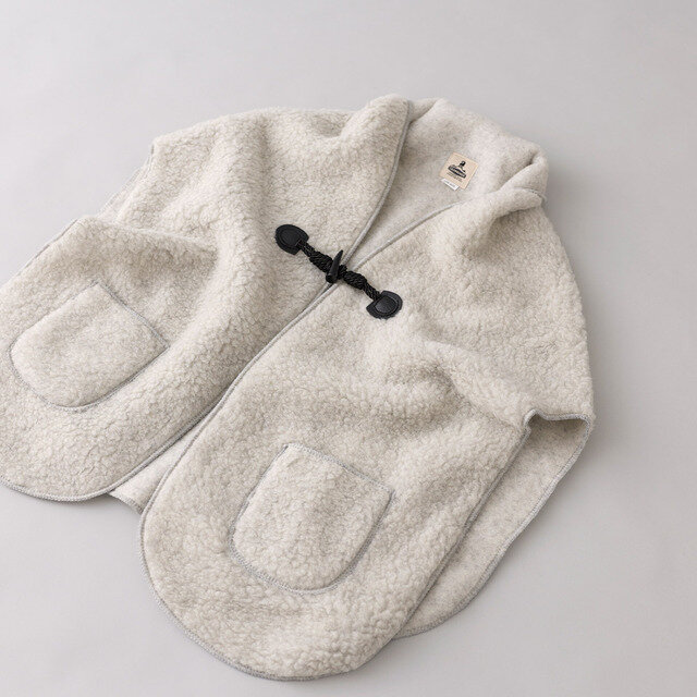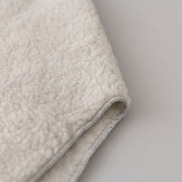 裏地はモコモコとした表面とは対照的に、スッキリとした肌触りで、素肌に触れても快適です。
