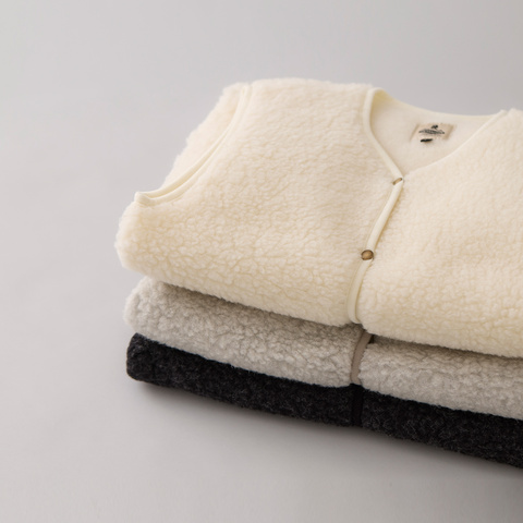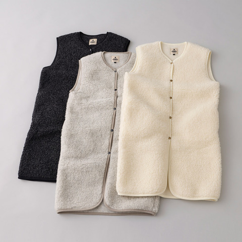 ニットやスウェットの上から重ねやすく、室内での防寒にはもちろん、軽めのアウターとしても活躍します。