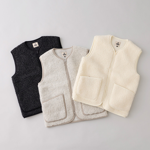 軽さ・暖かさ・動きやすさを備えた冬の頼れるベストとして、自然素材のやさしい温もりが日常に心地よさを添えてくれます。
